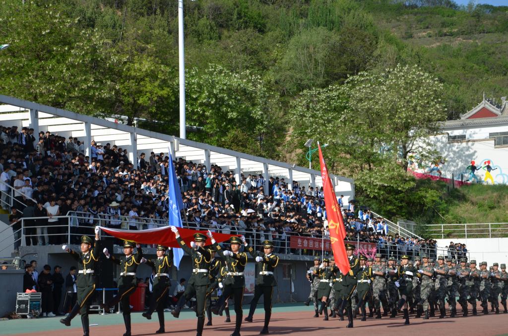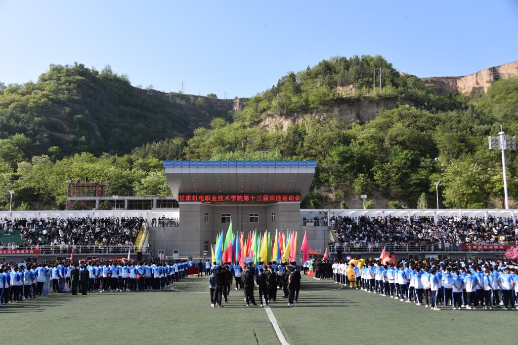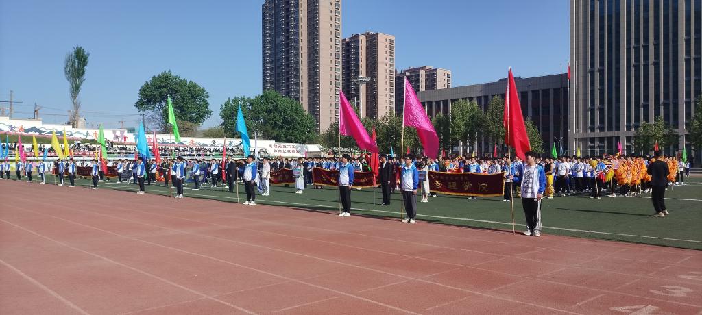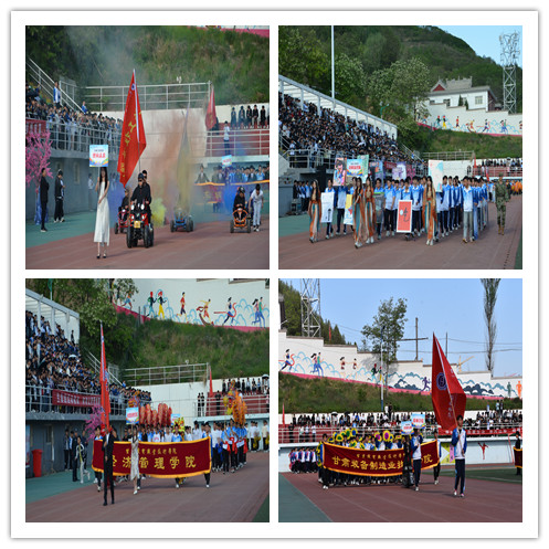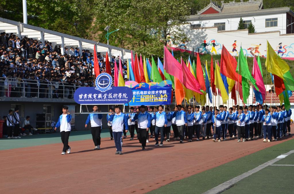 入场式上,伴随着高亢激昂的《运动员进行曲》,国旗护卫队擎着鲜艳的五星红旗率先入场;彩旗方阵、裁判员方阵、各学院运动员方阵等依次通过主席台,他们喊着嘹亮的口号,以良好的精神风貌,展示了机电师生的蓬勃朝气,体现了机电人的团结与自信。