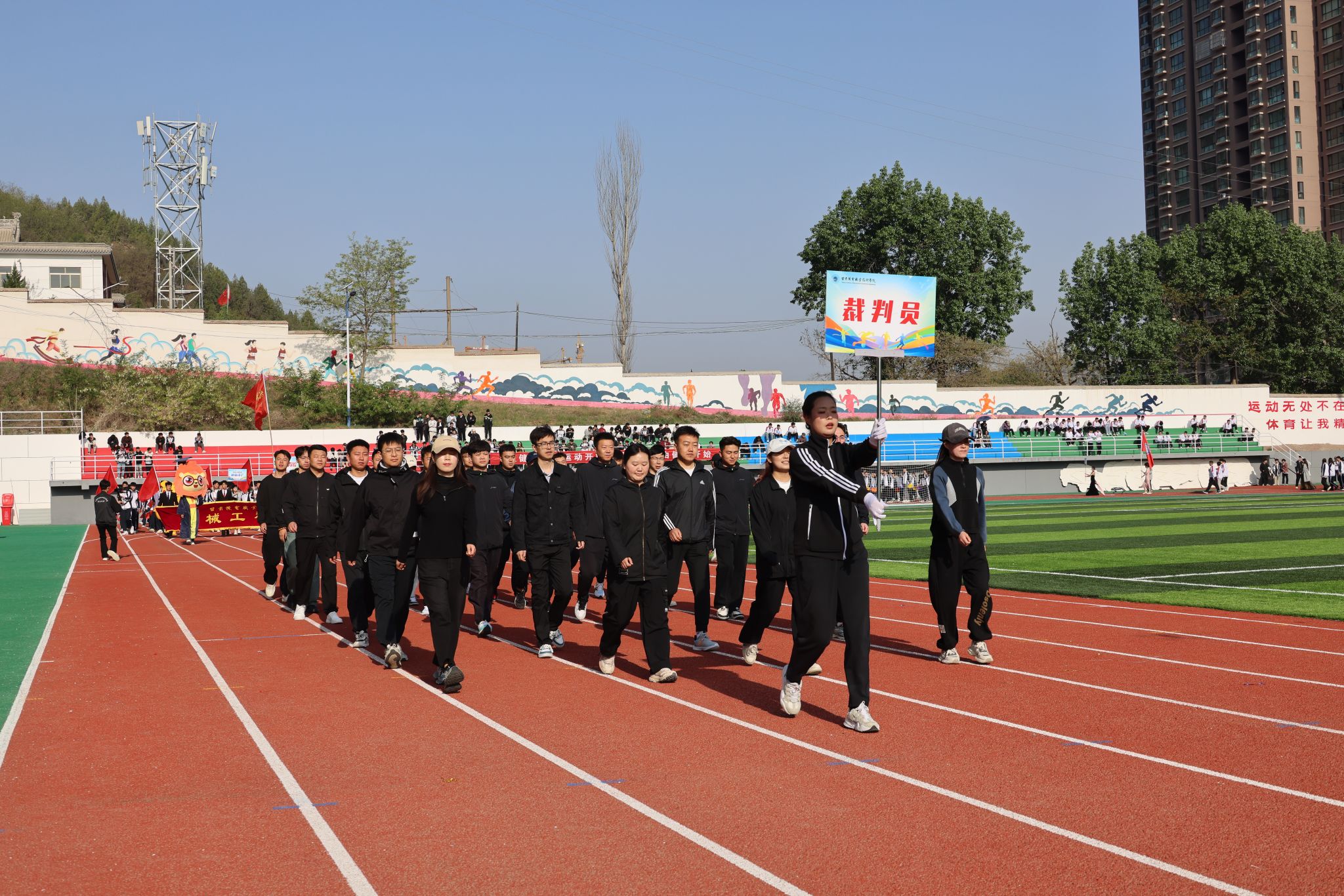 逐梦绿茵场,共绘青春章。4月28日,学校第十四届田径运动会在南区体育场开幕。在家校领导出席开幕式。副院长张庆华主持开幕式。全校师生齐聚一堂,共同观看。
