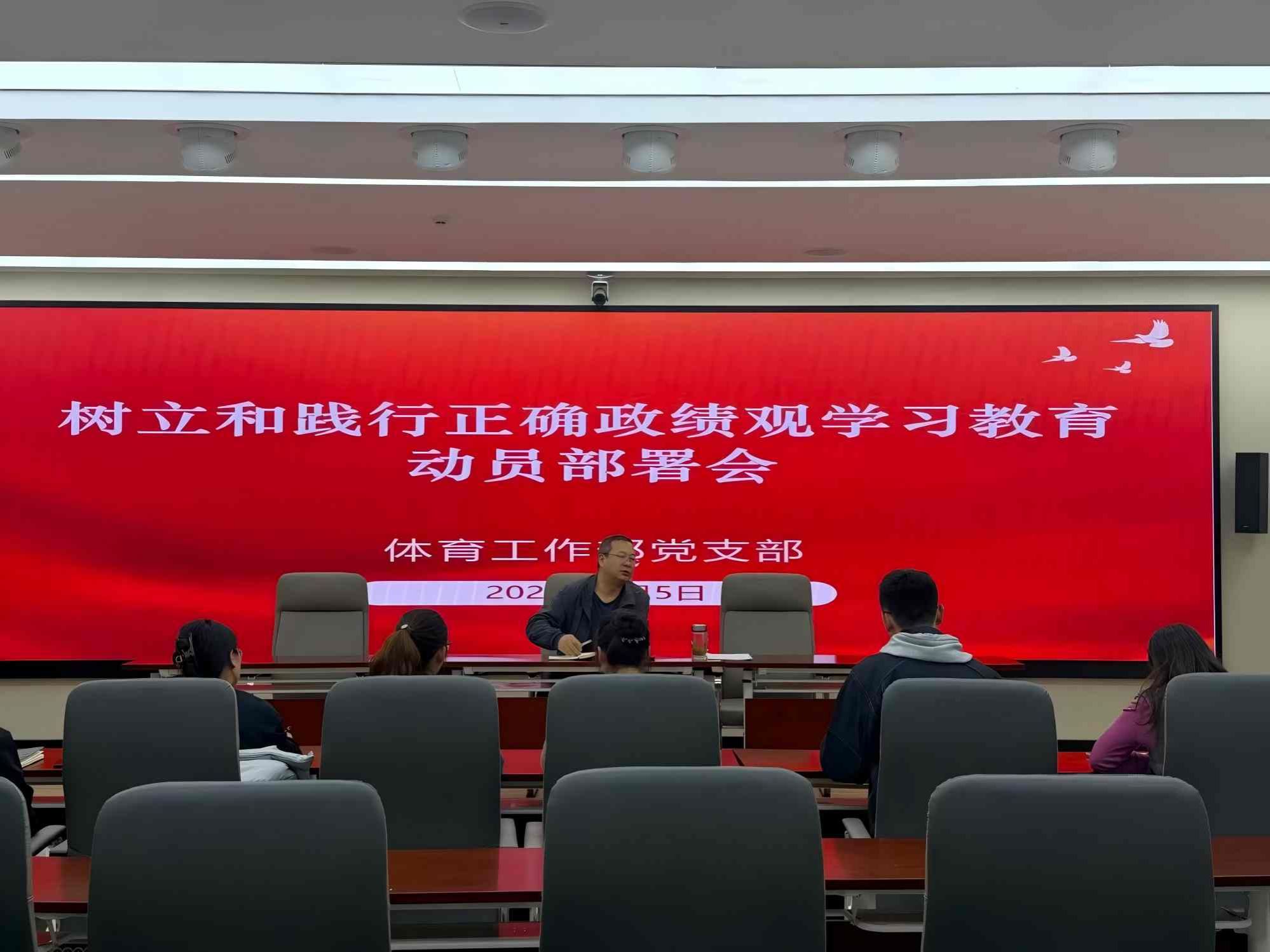 3月5日下午,我校体育工作部党支部召开“树立和践行正确政绩观学习教育部署会”,体育工作部全体党员参会,会议由党支部书记王晓军主持。