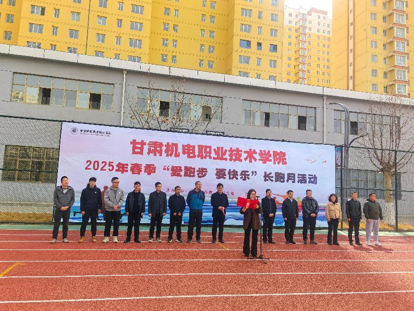 2025年3月11日下午,甘肃机电职业技术学院北校区田径场上彩旗飘扬,学院春季“爱跑步、要快乐”长跑月活动正式拉开帷幕。学院师生齐聚一堂,以奔跑的姿态开启为期一个月的校园体育热潮。活动旨在响应国家加强学校体育工作的号召,深化体教融合,提升学生体质,同时将劳模精神、劳动精神与工匠精神融入育人实践,为培养新时代高素质技能人才注入健康活力。