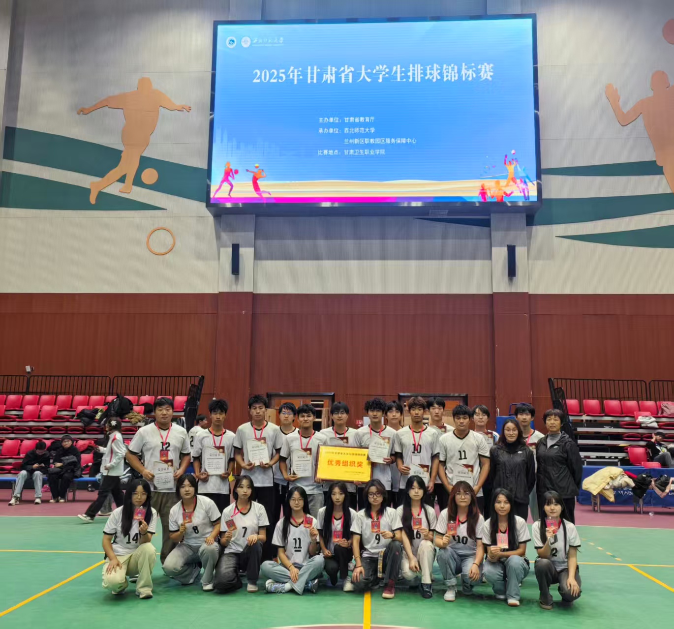 近日,由甘肃省教育厅主办的2025年甘肃省大学生锦标赛在兰州新区举行。本届赛事设有篮球、排球、足球三个项目,吸引了全省众多高校代表队参加。我校精心组织、积极备战,选派篮球队、排球队与足球队出征参赛,经过激烈角逐,我校男子排球队凭借顽强拼搏的精神与出色的团队配合,荣获丙组第八名的优异成绩;校篮球队亦表现优异,获评“体育道德风尚奖”;我校也在此次赛事中荣获“优秀组织奖”。